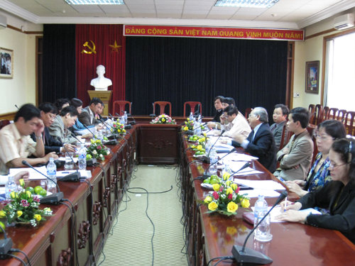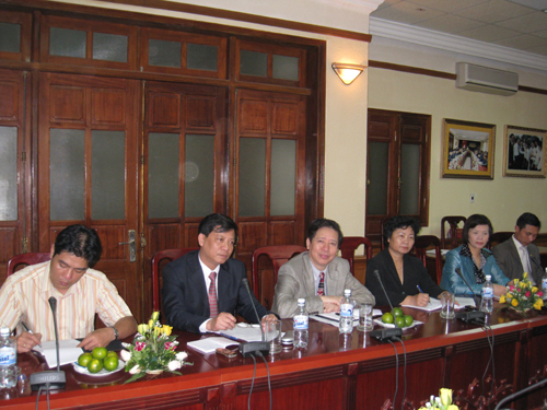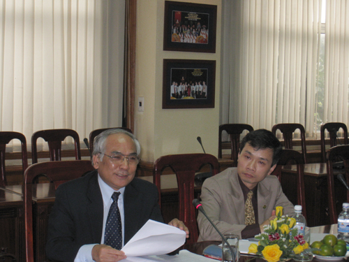 Làm việc với đoàn khảo sát có PGS.TS Phạm Trọng Quát - Bí thư Đảng ủy, Phó giám đốc, GS.TS Mai Trọng Nhuận - Phó Bí thư Đảng ủy, Giám đốc, cùng đại diện lãnh đạo một số ban chức năng, Bí thư Đoàn Thanh niên, Chủ tịch Hội Sinh viên của ĐHQGHN.