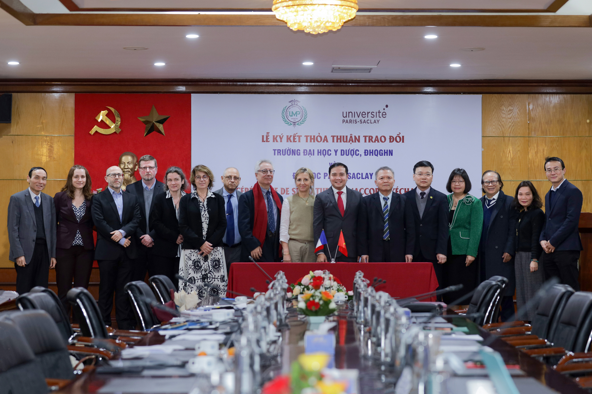 Chiều 16/12, dưới sự chứng kiến của PGS.TS. Đào Thanh Trường - Phó Giám đốc ĐHQGHN và ông Denis Fourmeau - Tuỳ viên Hợp tác Khoa học và Giáo dục đại học, Đại sứ Quán Pháp tại Hà Nội, Trường ĐH Y Dược và ĐH Paris-Saclay đã ký kết văn bản thỏa thuận hợp tác.