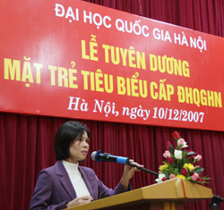 Phát biểu tại buổi lễ, PGS.TS Phạm Trọng Quát – Phó Bí thư thường trực Đảng ủy, Phó Giám đốc ĐHQGHN đã ghi nhận và biểu dương những thành quả mà thế hệ trẻ ĐHQGHN đã đạt được trong năm học vừa qua trong học tập, nghiên cứu khoa học, giảng dạy và rèn luyện đạo đức. PGS. chúc mừng những cá nhân đã vinh dự được nhận danh hiệu “Gương mặt trẻ tiêu biểu cấp ĐHQGHN năm 2007” đồng thời bày tỏ sự hy vọng các cá nhân nhận danh hiệu cao quý ngày hôm nay tiếp tục cố gắng nỗ lực phấn đấu và công hiến vì sự nghiệp phát triển ĐHQGHN nói riêng và nền giáo dục Việt Nam nói chung.