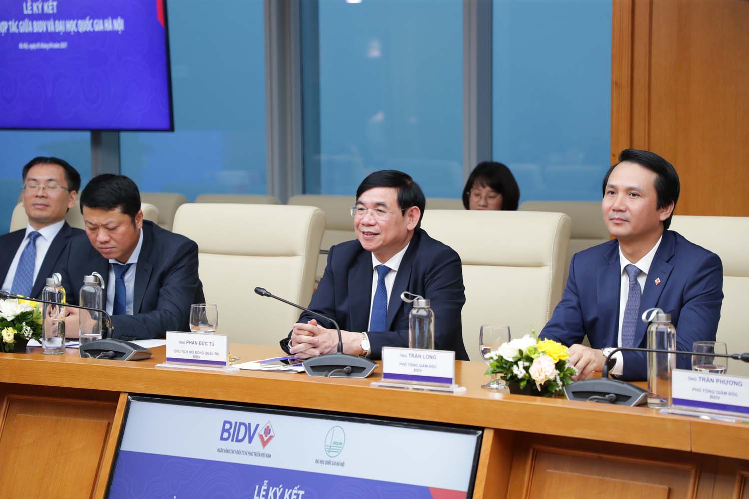 Chủ tịch Hội đồng quản trị BIDV Phan Đức Tú khẳng định, thỏa thuận lần này sẽ là chương trình hợp tác dài hơi hơn, thiết thực và hiệu quả hơn. Ông cũng nhấn mạnh việc nâng cấp sử dụng sản phẩm dịch vụ, hỗ trợ xây dựng cơ vật chất phù hợp với yêu cầu, định hướng của hai bên. BIDV sẽ tham gia cùng ĐHQGHN cùng đào tạo nguồn nhân lực chất lượng cao. ĐHQGHN tham gia cùng BIDV nghiên cứu thị trường nước ngoài về các lĩnh vực Kinh tế, Văn hóa, Xã hội… Chủ tịch Hội đồng quản trị Phan Đức Tú cam kết, BIDV sẽ luôn theo sát, đồng hành cùng ĐHQGHN trên các chặng đường phát triển.