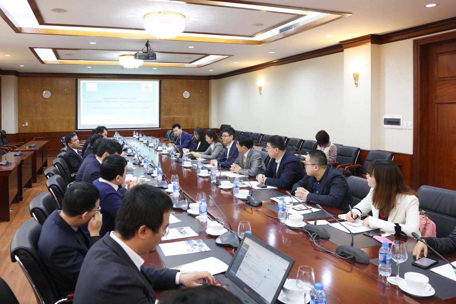 Ông Huang Wei, Phó Giám đốc NPU bày tỏ ấn tượng với những thành tựu của ĐHQGHN trong đào tạo, nghiên cứu, đồng thời tin rằng quan hệ hợp tác này sẽ mang lại lợi ích lớn cho cả hai bên. Ông Huang Wei mong muốn hợp tác trao đổi giảng viên. Ngoài ra, NPU cũng muốn kết hợp với ĐHQGHN qua việc tổ chức các hội nghị, hội thảo đến lĩnh vực liên quan, một năm ở NPU, một năm ở ĐHQGHN và ưu tiên lĩnh vực khoa học tự nhiên, năm đầu tiên có thể thực hiện hội thảo về khoa học vật liệu tiên tiến.