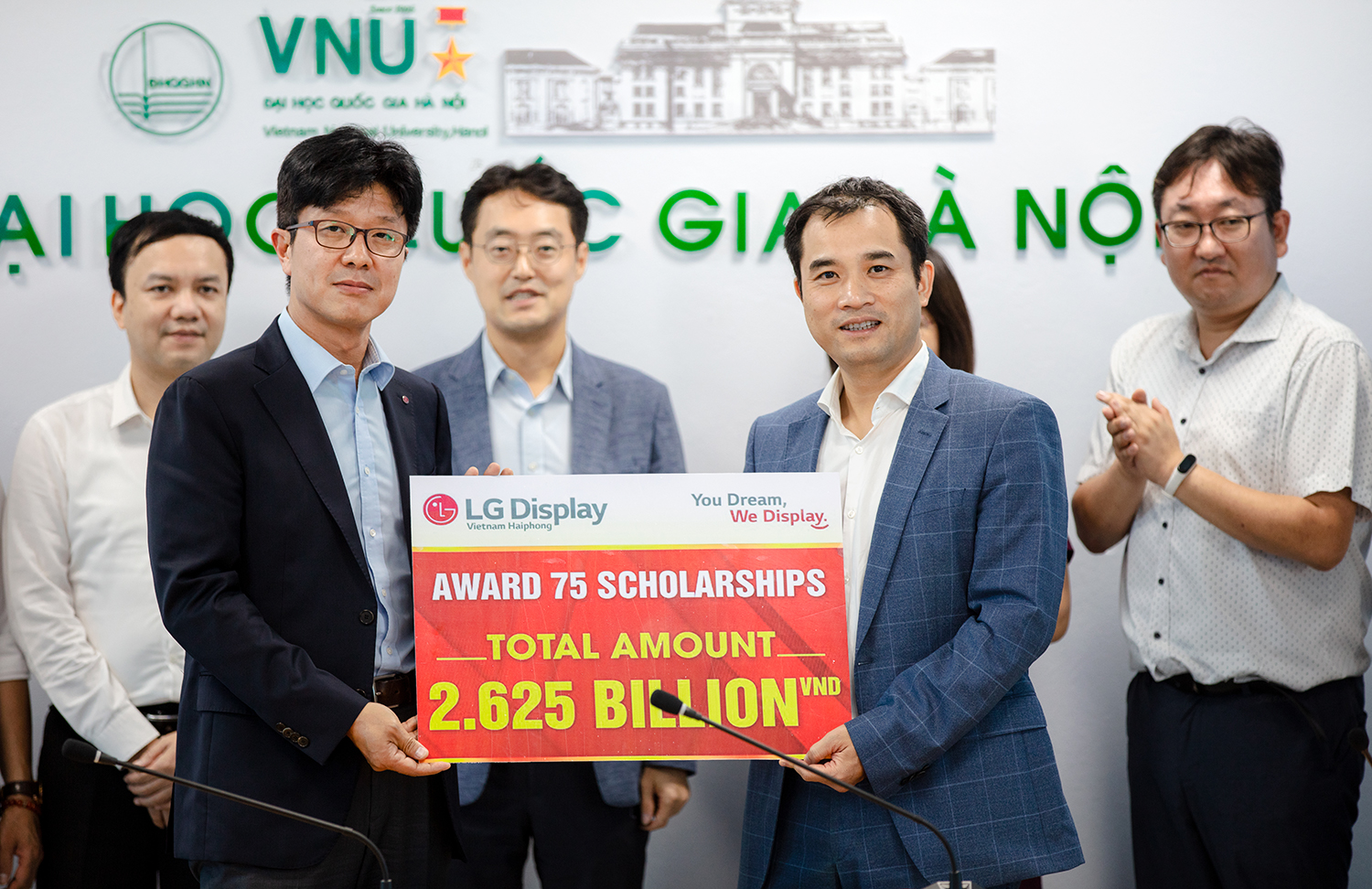 LG Display Hải Phòng trao tượng trưng tổng giá trị học bổng dành cho sinh viên ĐHQGHN trong năm học 2022-2023.