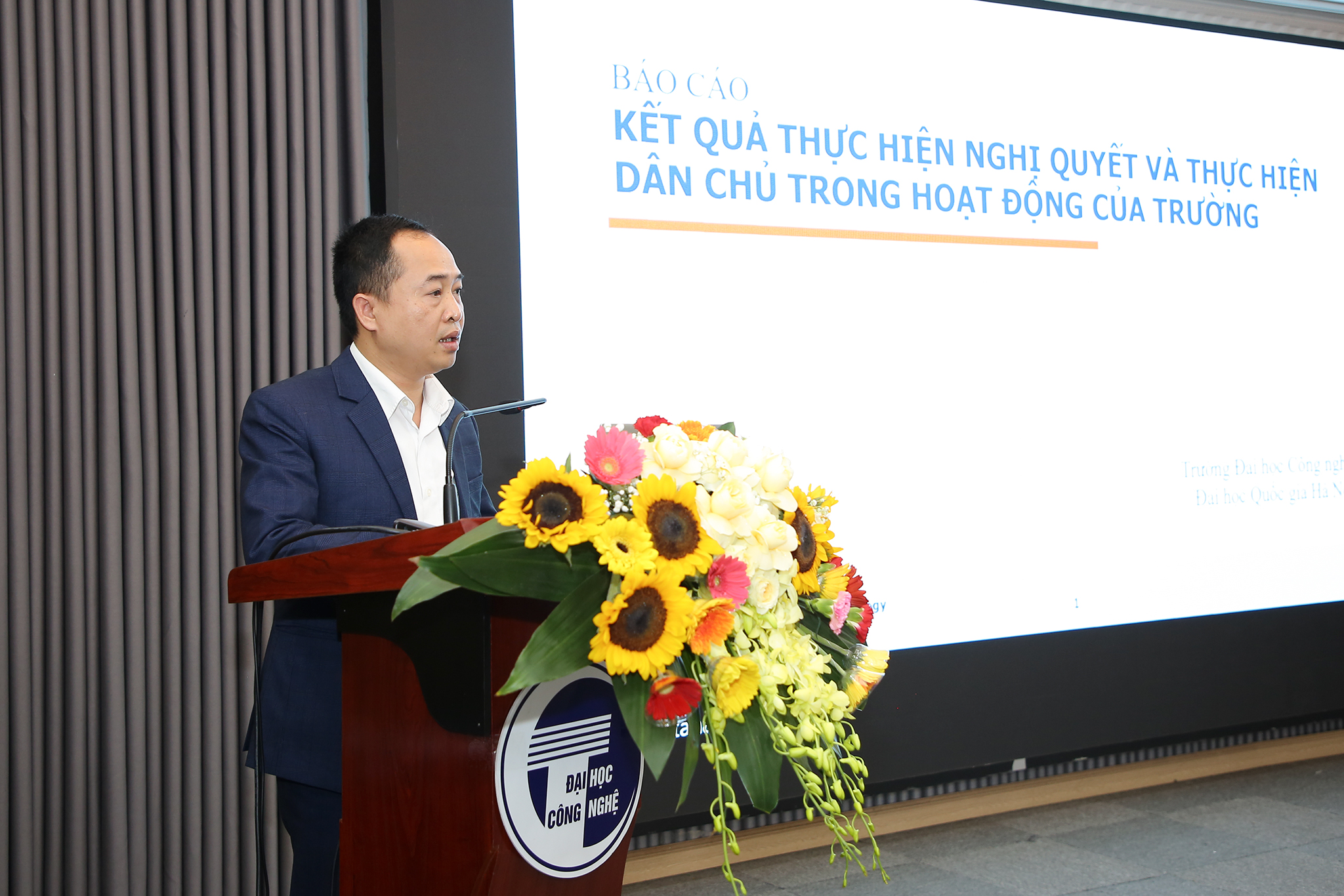 Phát biểu tại hội nghị, Phó Giám đốc ĐHQGHN Phạm Bảo Sơn ghi nhận những thành tựu mà đội ngũ cán bộ, giảng viên, sinh viên Trường ĐH Công nghệ đã nỗ lực trong năm học vừa qua. Ông cho rằng nhà trường đã có nhiều điểm sáng trong hoạt động, đáng chú ý là việc tiên phong trong việc đưa sinh viên năm nhất tới học tập, nghiên cứu tại cơ sở Hòa Lạc; ban hành rộng rãi quy chế chi tiêu nội bộ nhằm tăng thu nhập cho cán bộ; Nhà trường đã thể hiện đúng và trúng vị thế vai trò của trường trong lĩnh vực kỹ thuật công nghệ với sự phát triển chung của đất nước. Trường giữ vị thế đầu tàu trong việc phát triển khoa học kỹ thuật công nghệ, dựa trên nền tảng khoa học cơ bản để đào tạo nguồn nhân lực chất lượng cao trong lĩnh vực công nghệ của đất nước.