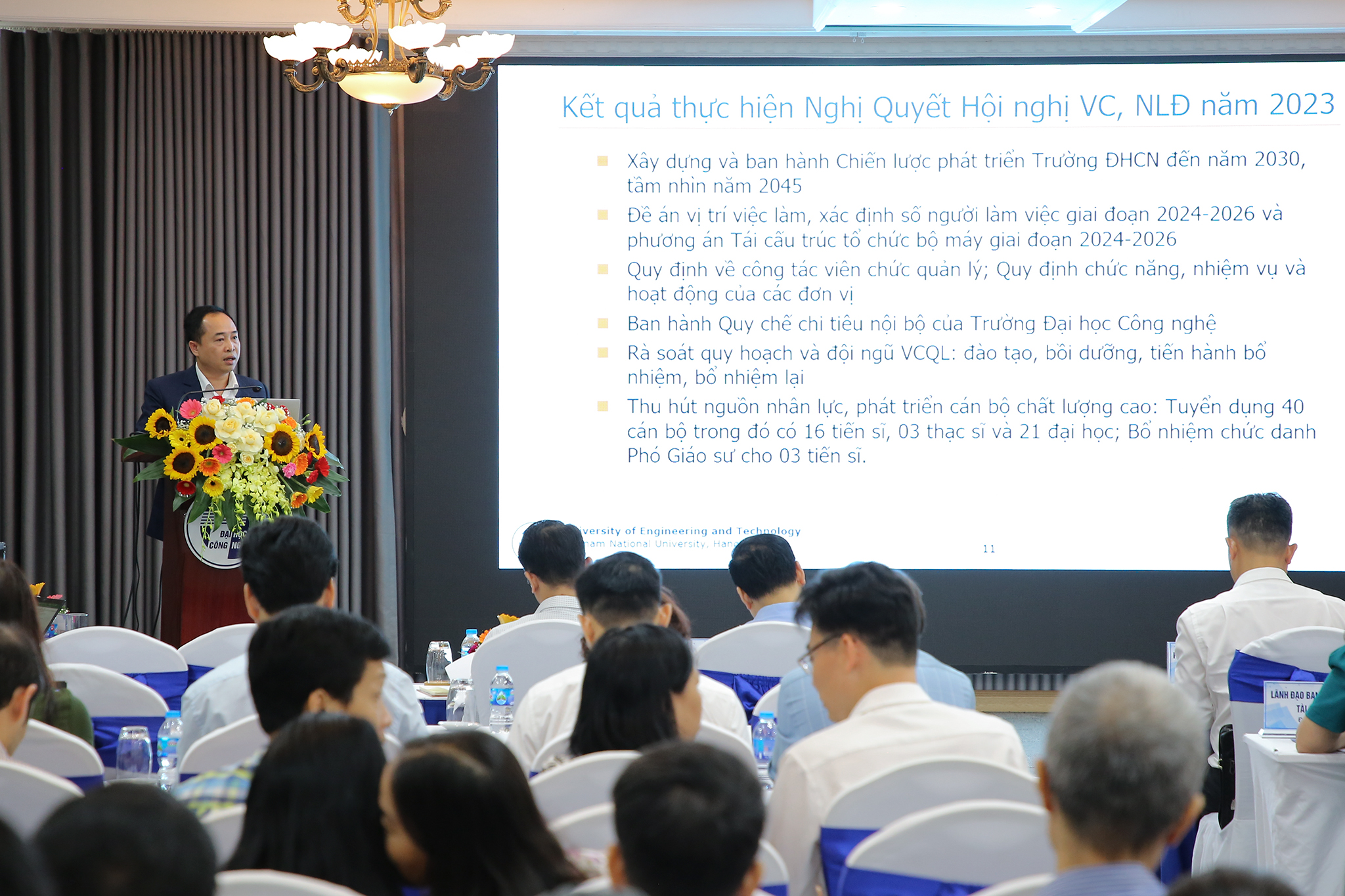 Tại hội nghị, Hiệu trưởng Trường ĐH Công nghệ Chử Đức Trình cam kết xây dựng một trường đại học đoàn kết và phát triển bền vững. Hiệu trưởng mong muốn thời gian tới sẽ nhận được sự ủng hộ, đồng hành từ phía lãnh đạo ĐHQGHN và theo đó Nhà trường sẽ là đơn vị xung phong, đồng hành với sự chỉ đạo của ĐHQGHN, đặc biệt là xây dựng cơ sở Hòa Lạc.