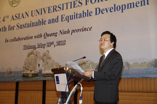“Đã đến lúc chúng ta nên ngồi lại với nhau và thảo luận một cách hết sức nghiêm túc về chuyện này. Diễn đàn là cơ hội tuyệt vời để chúng ta cùng thảo luận các vấn đề nổi cộm liên quan tới Tăng trưởng xanh và phát triển bền vững. Nếu không có những nỗ lực đáng ghi nhận và sự phối hợp nhiệt tình của ĐHQGHN và UBND tỉnh Quảng Ninh, sự kiện trọng đại này sẽ không thể diễn ra như mong đợi”, Giám đốc Đại học Quốc gia Seoul nhấn mạnh.