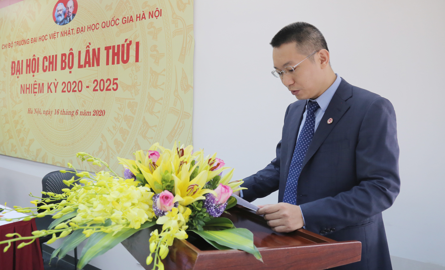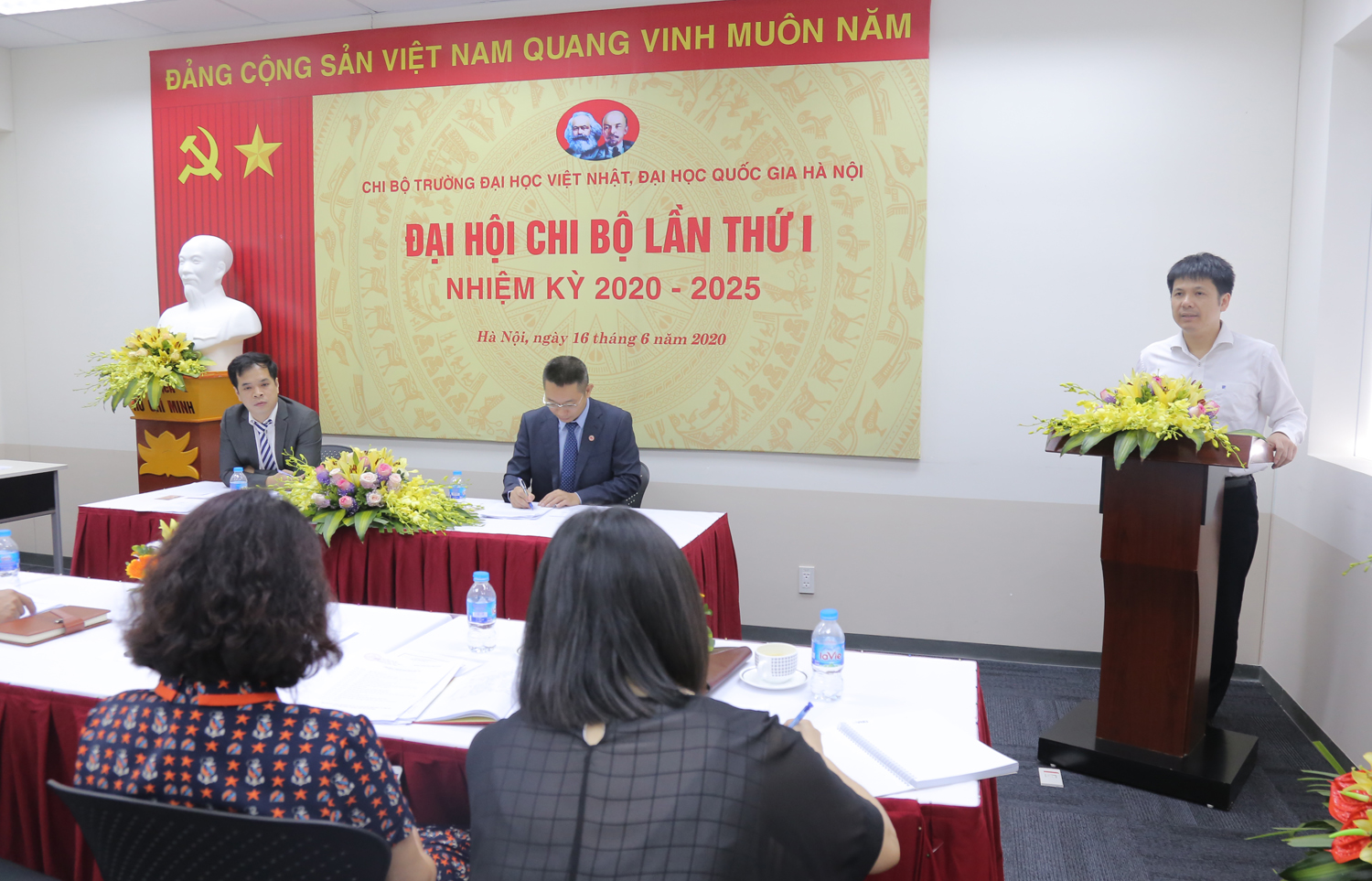 Phát biểu tại đại hội, Phó Bí thư, Trưởng ban Tổ chức Đảng ủy ĐHQGHN Nguyễn Hiệu ghi nhận những kết quả Chi bộ Trường ĐH Việt Nhật đã đạt được trong nhiệm kỳ 2017 – 2020. Phó Bí thư Nguyễn Hiệu đề nghị, trong thời gian tới, Chi bộ cần tập trung công tác xây dựng, chỉnh đốn đảng trên cơ sở bám sát các chỉ thị, nghị quyết của các cấp ủy Đảng cấp trên, thực hiện tốt công tác chính trị tư tưởng, tích cực nắm bắt tâm tư, nguyện vọng của đảng viên.