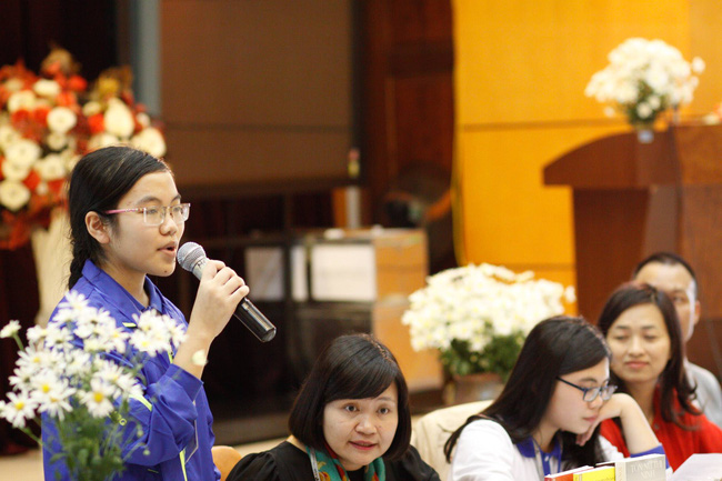 Đinh Thị Hương Thảo trong buổi gặp mặt học sinh - sinh viên tiêu biểu