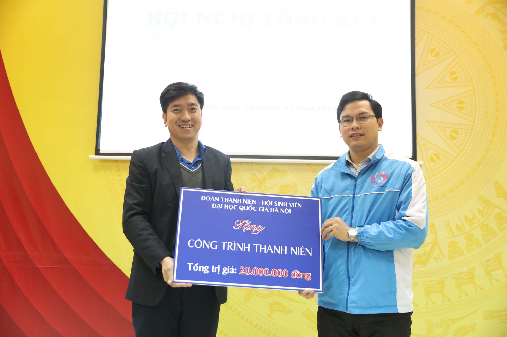 Đặc biệt, các Chi đoàn trực thuộc Đoàn ĐHQGHN đóng góp 20 triêu, Đoàn trường ĐH Ngoại ngữ 20 triệu và Liên chi đoàn Trường THPT Khoa học Giáo dục đóng góp 25 triệu để xây tặng tỉnh Cao Bằng một Công trình Thanh niên trị giá 65 triệu đồng.