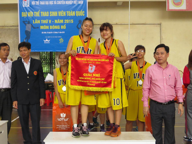 Ông Ngô Quang Huy, Giám đốc Trung tâm Giáo dục Thể chất và Thể thao, ĐHQGHN, đã đại diện cho Hội Thể thao Đại học và Chuyên nghiệp Hà Nội nhận Cờ giải Nhì toàn đoàn.