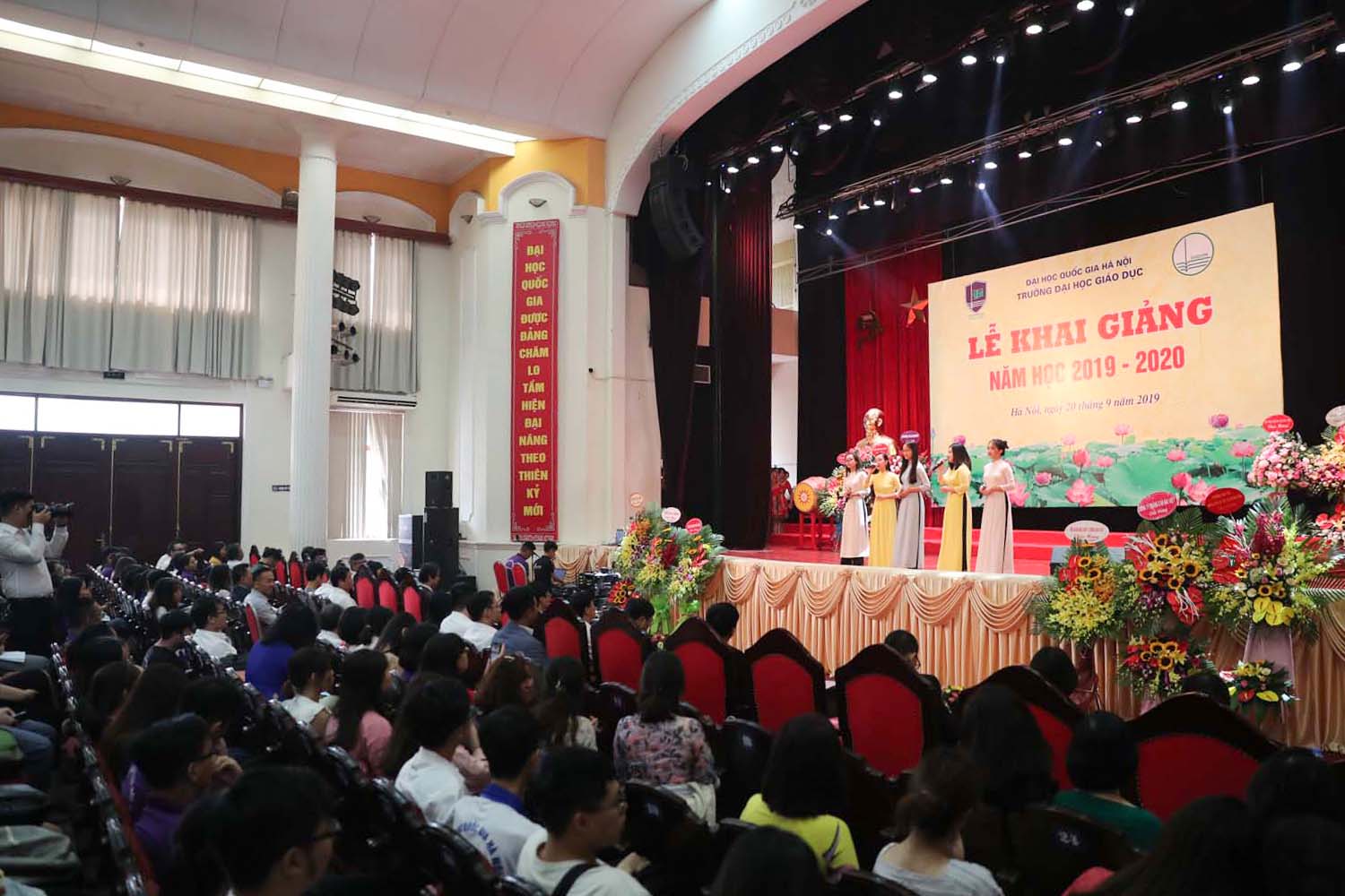 Giám đốc ĐHQGHN Nguyễn Kim Sơn đã tới dự và chúc mừng 500 tân sinh viên cùng toàn thể thầy cô giáo, sinh viên nhà trường một năm học mới thành công. Năm học 2019 - 2020 là một năm học đặc biệt khi lần đầu tiên Trường ĐH Giáo dục triển khai 5 chương trình đào tạo mới, đánh dấu 20 năm xây dựng và trưởng thành của Trường ĐH Giáo dục