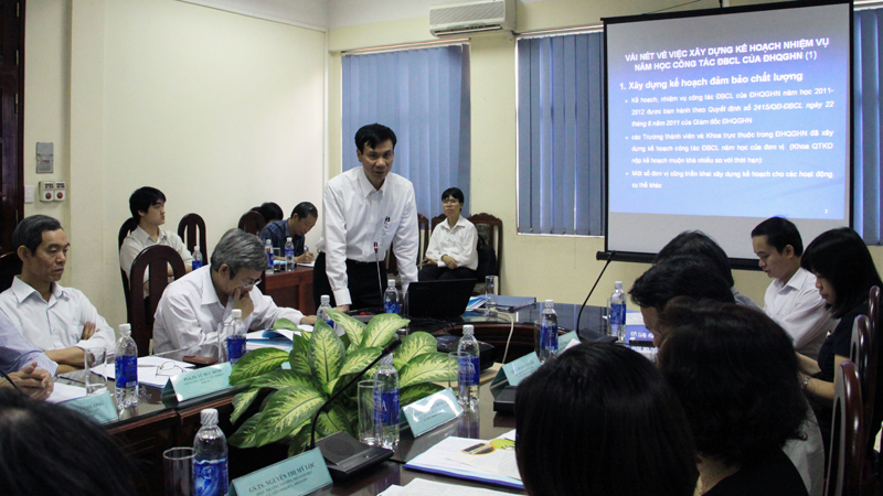 GS.TS Mai Trọng Nhuận nhấn mạnh, trong thời gian vừa qua, các đơn vị đã tích cực xây dựng kế hoạch nhiệm vụ năm học về công tác đảm bảo chất lượng và quan tâm tới văn hóa chất lượng ở nhiều khía cạnh khác nhau. Giám đốc ĐHQGHN đã biểu dương những sáng kiến của một số đơn vị trong việc chủ động và sáng tạo vận dụng linh hoạt các chuẩn chất lượng quốc tế vào thực tiễn của đơn vị. GS. Mai Trọng Nhuận đặc biệt đánh giá cao nỗ lực của Ban Chỉ đạo Công nghệ thông tin và các đơn vị trong việc nỗ lực xây dựng tài nguyên số của ĐHQGHN, góp phần vào việc tăng hạng của ĐHQGHN trong xếp hạng các trường đại học. Việc tổ chức đào tạo tập trung ngoại ngữ cho sinh viên năm thứ nhất nhiệm vụ chiến lược là một bước quan trọng tạo đột phá trong việc tạo dựng văn hóa chất lượng.