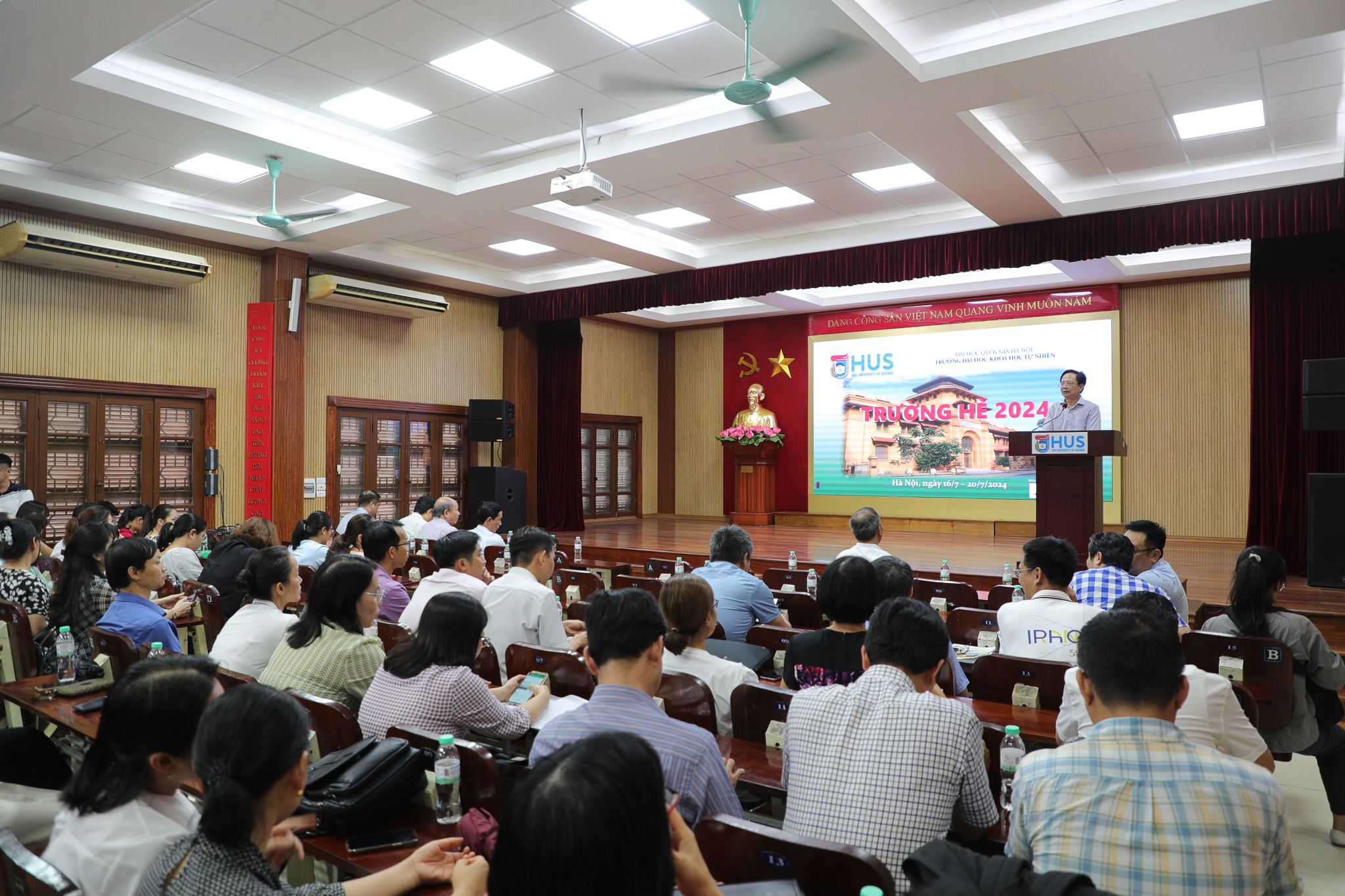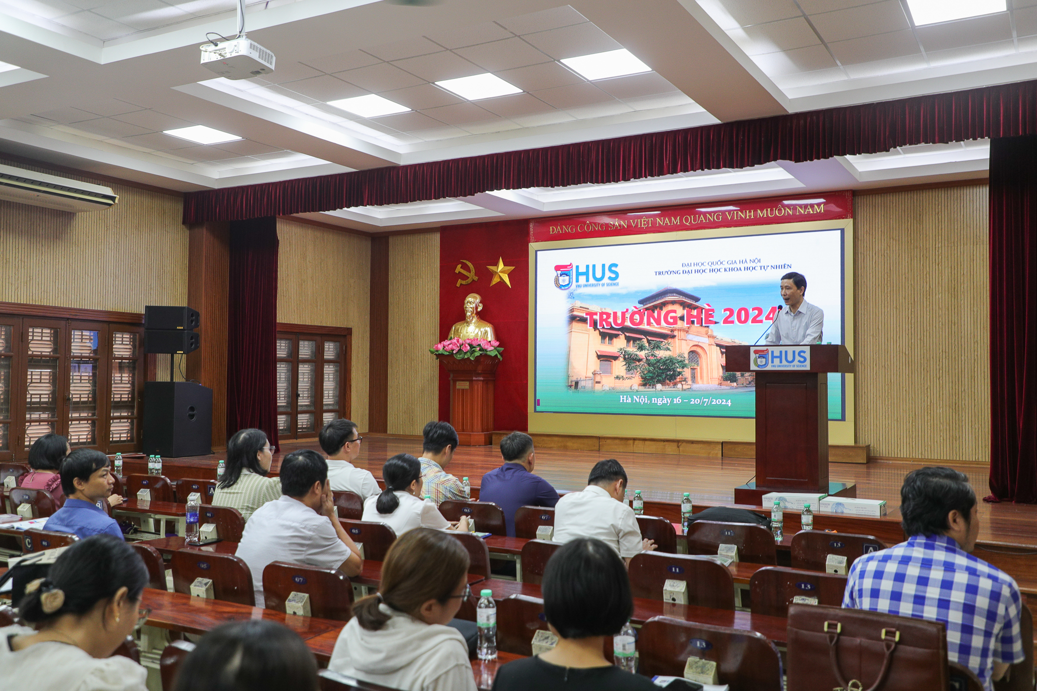Phó Hiệu Trưởng Ngạc An Bang cho biết, bối cảnh chương trình giáo dục phổ thông được đổi mới trong những năm gần đây, Trường hè 2024 không chỉ nhằm cập nhật kiến thức, trao đổi kinh nghiệm mà còn là dịp để trường đại học được chia sẻ, trao đổi với các thầy cô về môi trường và cách thức đào tạo ở bậc đại học. Đây cũng là cầu nối giữa Trường ĐHKHTN với các đơn vị đào tạo THPT trong cả nước thêm gắn kết, lan tỏa giá trị đổi mới trong học thuật, phát hiện và bồi dưỡng nhân tài trẻ trong khắp cả nước. Trong khoảng thời gian tham dự Trường hè 2024 tại Nhà trường, Ban tổ chức Chương trình tin rằng các thầy cô tham dự sẽ có thêm những thông tin không chỉ liên quan tới lĩnh vực chuyên môn thuộc các ngành Toán học, Hoá học, Vật lý, Sinh học và Tin học, ngoài ra sẽ có được mối liên kết giữa các môn học đó với nhiều ngành học khác cũng như mối quan hệ với các nghề nghiệp khác trong xã hội. Từ đó có thêm những định hướng nghề nghiệp cần thiết giúp các bạn học sinh lựa chọn được định hướng đúng đắn cho bản thân.