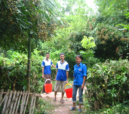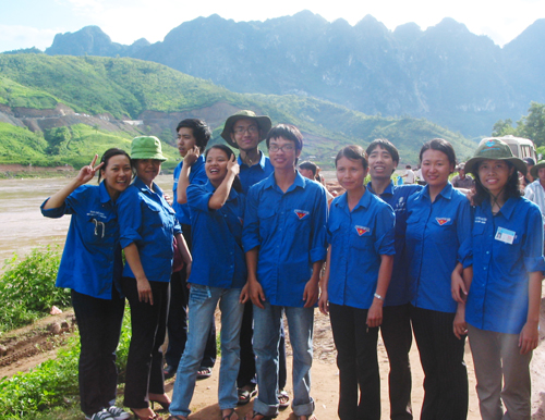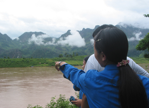 |  | Hai đồng chí cán bộ huyện đoàn Quỳnh Nhai (thứ 2,3 từ phải sang)đón đội SVTN Trường ĐHKHTN ngay trên bến phá Pác Uôn |
