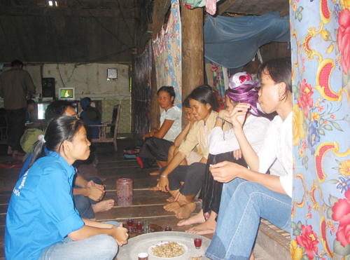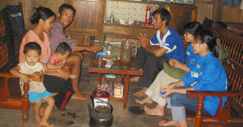 | Đồng bào Thái ở Pác Ma rất vui khi có sinh viên từ Hà Nội lên |