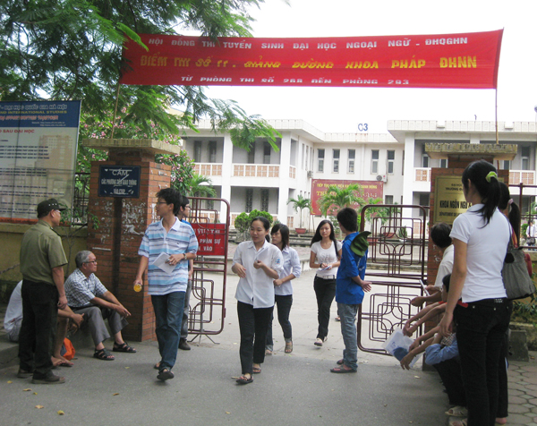 Sau 2/3 thời gian làm bài, đã có lác đác những thí sinh thi Văn khối D tại điểm thi Trường ĐH Ngoại ngữ ra về |