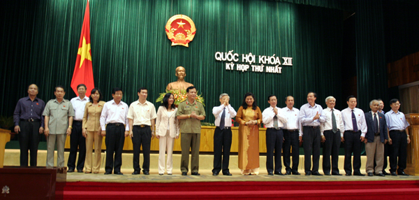 GS.VS Đào Trọng Thi (thứ 6 từ trái sang) đắc cử Ủy viên Ủy ban Thường vụ Quốc hội khóa XII; Ảnh: Nguyễn Đình Toán