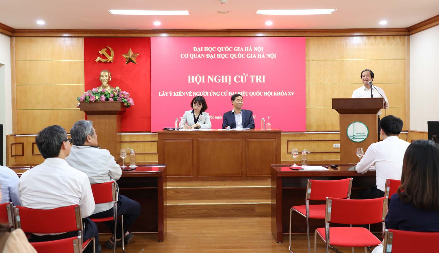 Thực hiện Công văn số 219-CV/VPTW ngày 10/3/2021 của Văn phòng Ban Chấp hành Trung ương Đảng về việc giới thiệu nhân sự ứng cử đại biểu Quốc hội khóa XV, ĐHQGHN đã triển khai quy trình giới thiệu đại biểu ứng cử đại biểu Quốc hội khóa XV và đã tổ chức Hội nghị lấy ý kiến cử tri nơi công tác đối với người dự kiến giới thiệu ứng cử đại biểu Quốc hội khóa XV.