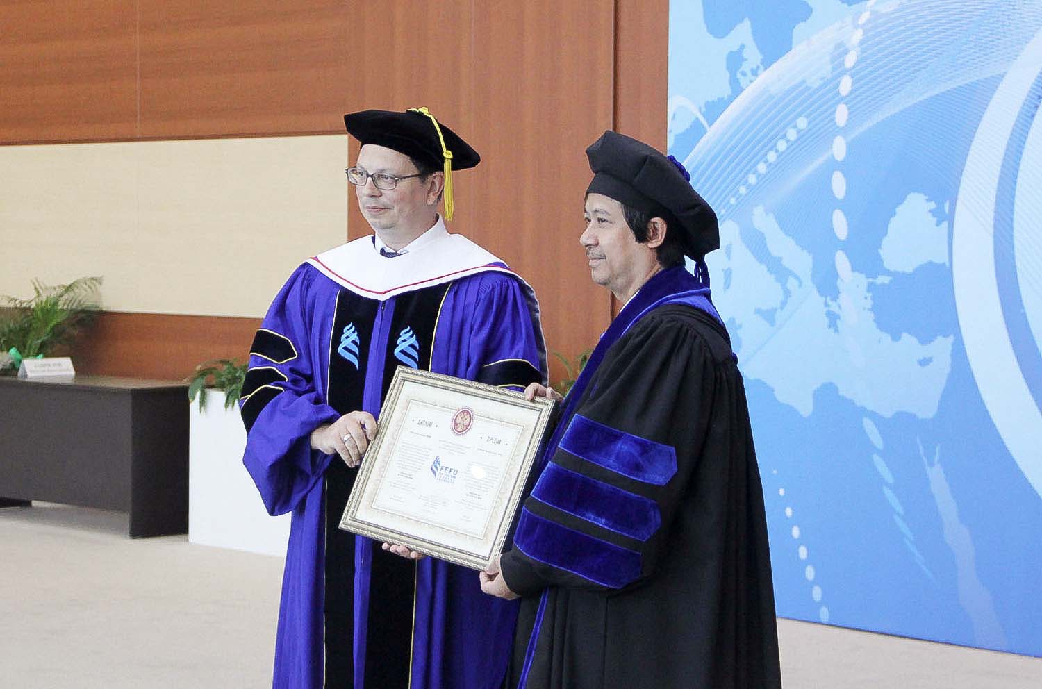 Giám đốc FEFU Anisimov trao bằng Tiến sĩ danh dự cho Giám đốc ĐHQGHN Nguyễn Kim Sơn