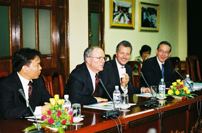 Tiếp đoàn có Phó Giám đốc ĐHQGHN Vũ Minh Giang, Hiệu trưởng Trường ĐH Công nghệ Nguyễn Hữu Đức,…