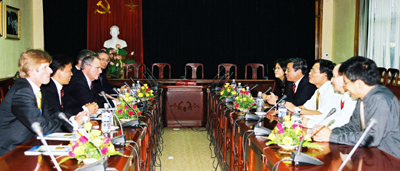 Lãnh đạo hai bên đã trao đổi một số thông tin khái quát về hai cơ quan và một số nội dung liên quan đến các vấn đề về đào tạo và sử dụng hiệu quả nguồn nhân lực công nghệ thông tin.