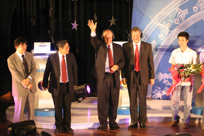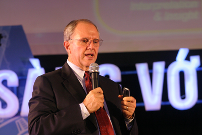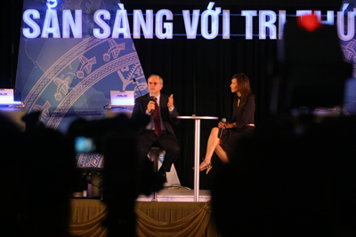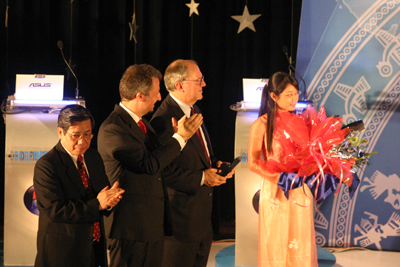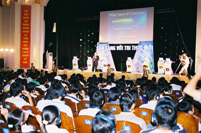 Ngay sau buổi làm việc với lãnh đạo ĐHQGHN, ông Craig Mundie đã có buổi giao lưu với sinh viên Trường ĐH Công nghệ - ĐHQGHN và tham dự lễ trao giải cho vòng khởi động cuộc thi “Sẵn sàng với tri thức mới” tại hội trường 10-12.