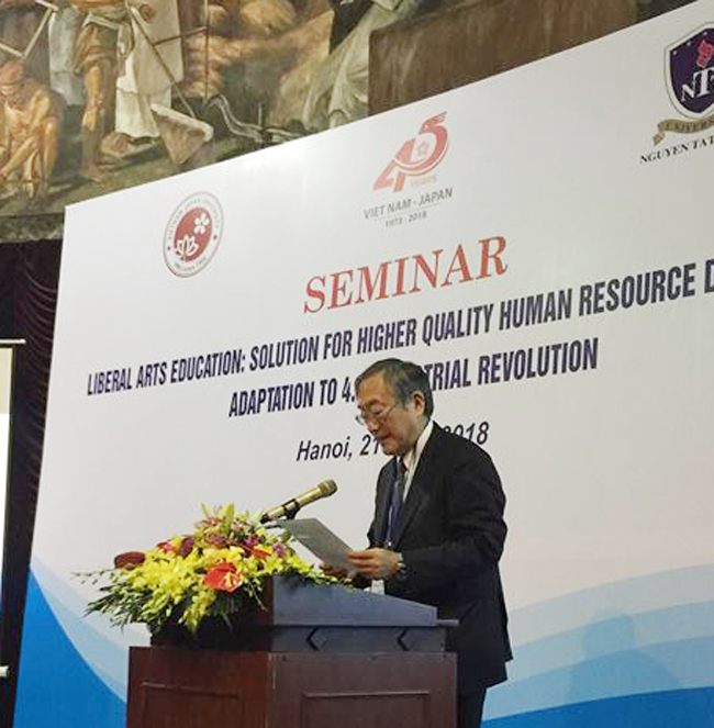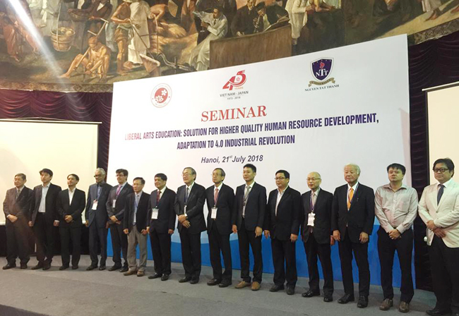 Hiệu trưởng Trường ĐH Việt Nhật GS. Furuta Motoo đã chia sẻ, “chúng ta đang sống trong thế giới thay đổi nhanh, thời đại cách mạng công nghiệp 4.0. Có người ước đoán rằng trí thông minh nhân tạo sẽ tiêu diệt một nửa công việc hiện tại. Chúng ta phải đào tạo với nguồn nhân tài không bị trí thông minh nhân tạo tiêu diệt, ngược lại, làm chủ được trí thông minh nhân tạo. Thế thì cần phải có một nền giáo dục đào tạo nguồn nhân lực có tầm nhìn rộng, khả năng sáng tạo phong phú, nền tảng kiến thức liên ngành và khả năng thích ứng với thay đổi. Đó chính là giáo dục khai phóng”.