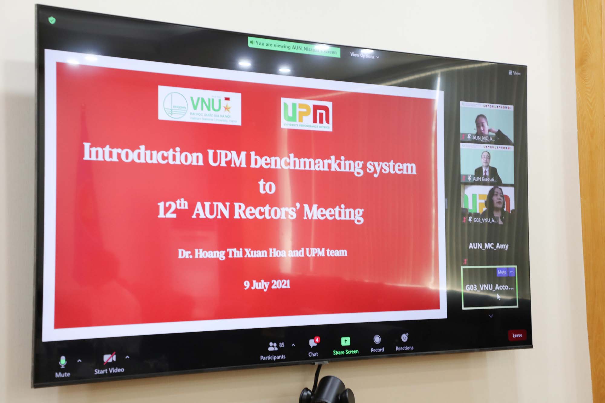 Đại diện nhóm nghiên cứu ĐHQGHN đã giới thiệu về hệ thống xếp hạng đối sánh do Việt Nam phát triển mang tên “University Performance Metrics” (UPM), sản phẩm do nhóm nghiên cứu ĐHQGHN thực hiện dưới sự tài trợ của Chương trình Khoa học Giáo dục cấp quốc gia do Bộ GD&ĐT chủ trì. Hệ thống UPM tiếp cận theo xu hướng đối sánh và gắn sao, theo đó, các trường đại học có thành tích gần nhau được xếp cùng một nhóm và gắn từ 1-5 sao. Trên cơ sở lõi xếp hạng truyền thống, UPM phát triển thêm các tiêu chí đặc trưng của đại học trong kỷ nguyên của chuyển đổi số.