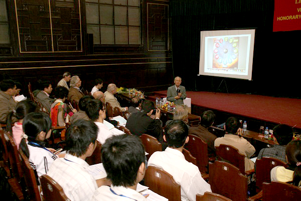 GS. Nguyễn Quang Riệu trong một hội nghị khoa học về Vật lý thiên văn tại ĐHQGHN