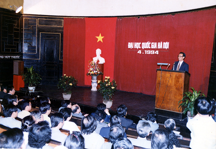 GS. Nguyễn Văn Đạo phát biểu tại buổi lễ ra mắt ĐHQGHN tại Hội trường Ngụy Như Kon Tum, ngày 07/4/1994