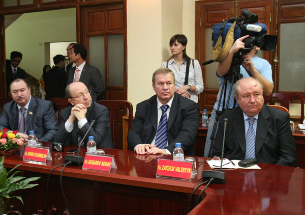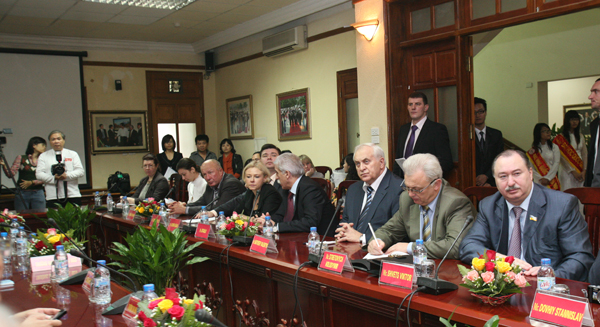 Tiếp đoàn, về phía Quốc hội nước Cộng hòa XHCN Việt Nam có TS. Ngô Đức Mạnh - Phó chủ nhiệm UB Đối ngoại Quốc hội; Về phía ĐHQGHN có GS.TS Mai Trọng Nhuận – Giám đốc ĐHQGHN; các Phó Giám đốc: GS.TSKH Vũ Minh Giang, PGS.TS Phạm Trọng Quát, GS.TS Nguyễn Hữu Đức.