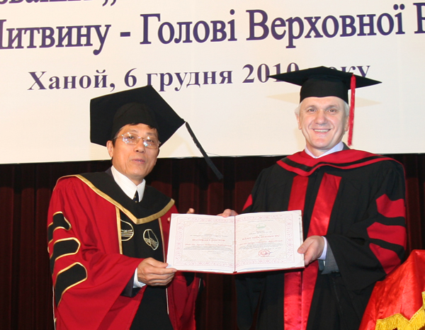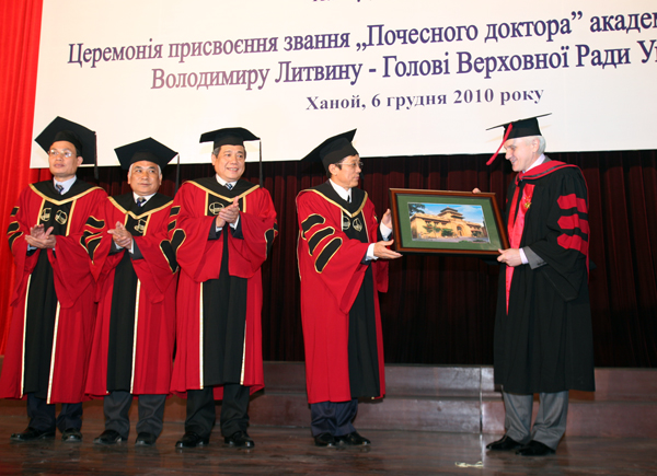 Với những thành tựu khoa học xuất sắc và nhằm ghi nhận những đóng góp cho sự phát triển của giáo dục Việt Nam nói chung và cho ĐHQGHN nói riêng, ĐHQGHN đã quyết định trao bằng tiếng sỹ danh dự cho Ngài Volodymyr Lytvyn – Giáo sư ĐHQG Kiev, Viện sĩ Viện Hàn lâm Khoa học Ucraina, Chủ tịch Quốc hội Ucraina.