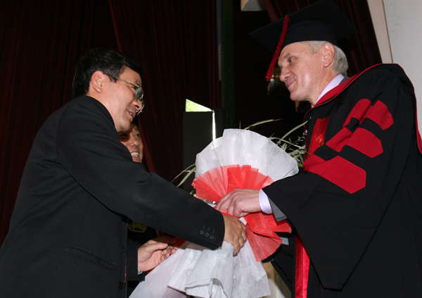Sau lễ đón tiếp, ĐHQGHN đã long trọng tổ chức lễ trao bằng tiến sĩ danh dự cho Ngài Chủ tịch Quốc hội Ucraina, GS.VS Volodymyr Lytvyn với sự tham dự đông đảo của cán bộ, thầy cô giáo và sinh viên ĐHQGHN.