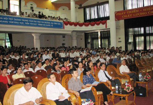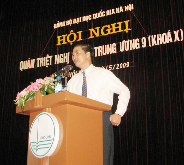 Tiếp đó, các đảng viên của ĐHQGHN đã nghe TS. Bùi Thế Đức - Vụ trưởng Vụ Tuyên truyền, Ban Tuyên giáo Trung ương giới thiệu những vấn đề cơ bản nhất của Hội nghị Trung ương 9 (khoá X) và nhấn mạnh một số nhiệm vụ, giải pháp nhằm tiếp tục thực hiện thắng lợi Nghị quyết Đại hội toàn quốc lần thứ X của Đảng.