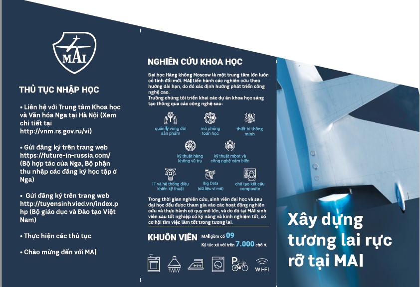 Theo các chỉ tiêu được ấn định bởi chính phủ Liên Bang Nga về giáo dục đối với công dân nước ngoài, công dân nước Cộng hòa Xã hội Chủ nghĩa Việt Nam có thể giành được học bổng để học tập tại Đại học Hàng không Matxcova (Trường tổng hợp nghiên cứu Quốc gia) – MAI.