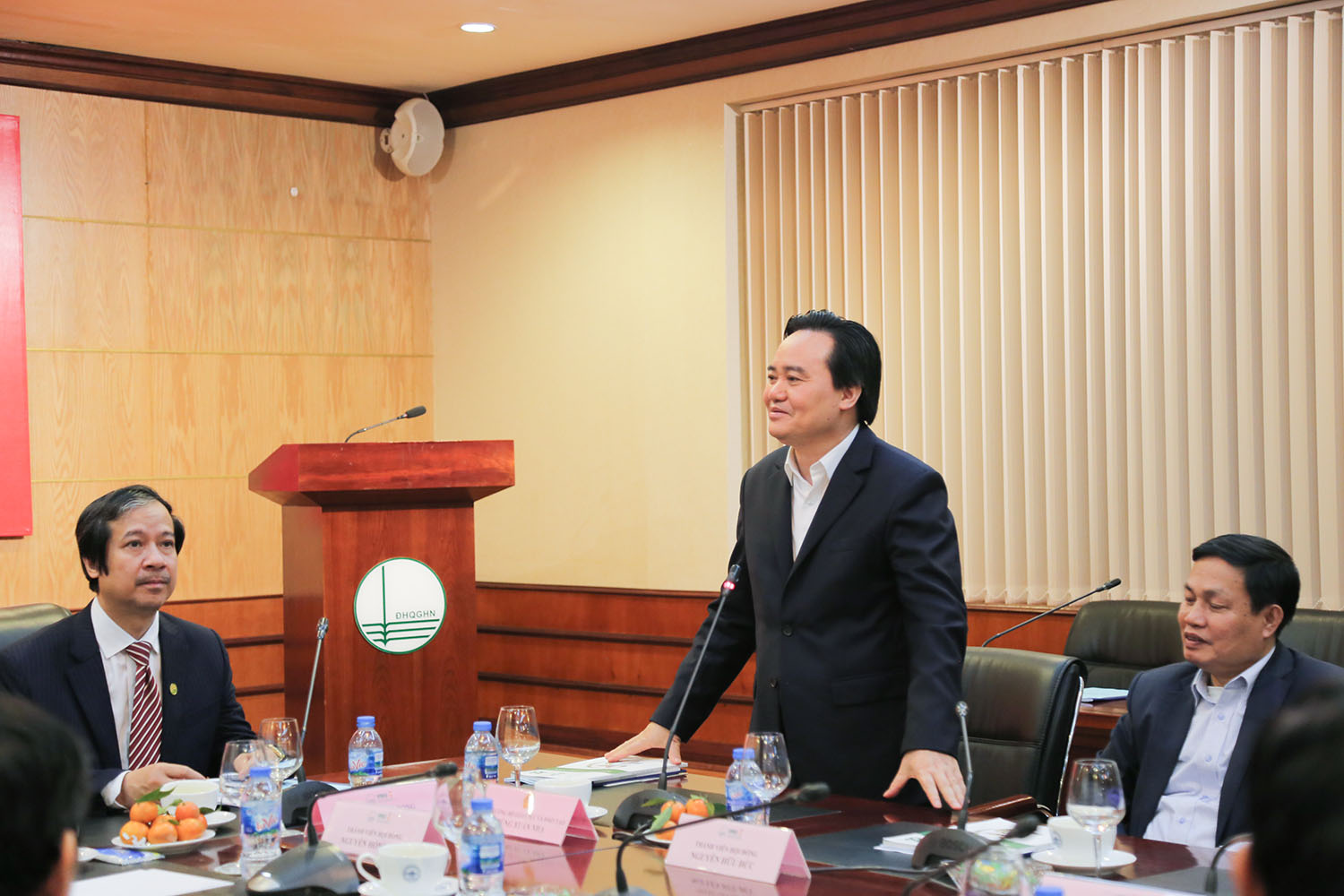 Bộ trưởng Phùng Xuân Nhạ chúc mừng tân Chủ tịch Hội đồng ĐHQGHN Nguyễn Kim Sơn trên cương vị mới; đồng thời, ghi nhận những kết quả của ĐHQGHN đã đạt được trong năm 2018. Để tiếp tục phát huy những thành tựu đó, đồng chí Phùng Xuân Nhạ mong rằng các cấp ủy đảng, chính quyền và từng cán bộ, đảng viên, công chức, viên chức và người học tại ĐHQGHN phải đồng lòng, chung sức, nêu cao tinh thần trách nhiệm để hoàn thành tốt chức trách, nhiệm vụ được Đảng và Nhà nước giao phó. Bộ trưởng nhấn mạnh, trong quá trình đó, Bộ GD&ĐT sẽ luôn đồng hành cùng ĐHQGHN trên các chặng đường phát triển để giữ vững vai trò là đầu tàu trong hệ thống giáo dục nước nhà.