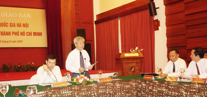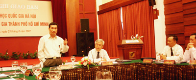 Ngày 25/8, Hội nghị giao ban giữa ĐHQGHN và ĐHQG TP.HCM năm 2007 đã được tổ chức dưới sự chủ trì của ĐHQGHN. Tham dự Hội nghị có các đồng chí trong Ban giám đốc, lãnh đạo các Ban chức năng và lãnh đạo các đơn vị trực thuộc của hai ĐHQG. GS.VS Đào Trọng Thi, Giám đốc ĐHQGHN và PGS.TS Phan Thanh Bình, Giám đốc ĐHQG TP. HCM đồng chủ trì Hội nghị.