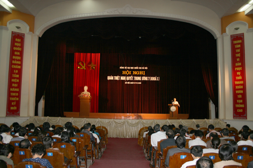 Đông đảo đảng viên là cán bộ chủ chốt của ĐHQGHN và các đơn vị trực thuộc đã tham dự hội nghị.