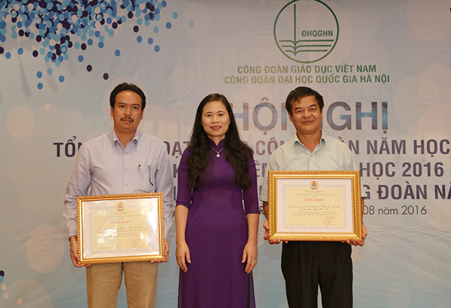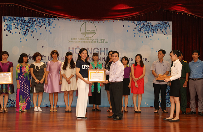 Nhân dịp này, Phó Chủ tịch Công đoàn Giáo dục Việt Nam Nguyễn Thị Bích Hợp và Chủ tịch Công đoàn ĐHQGHN Đinh Văn Hường đã trao tặng Cờ Thi đua, bằng khen của Tổng Liên đoàn Lao động Việt Nam, Công đoàn Giáo dục Việt Nam; trao tặng giấy khen của Công đoàn ĐHQGHN cho 29 tập thể, 324 cá nhân đã có thành tích xuất sắc trong phong trào thi đua.