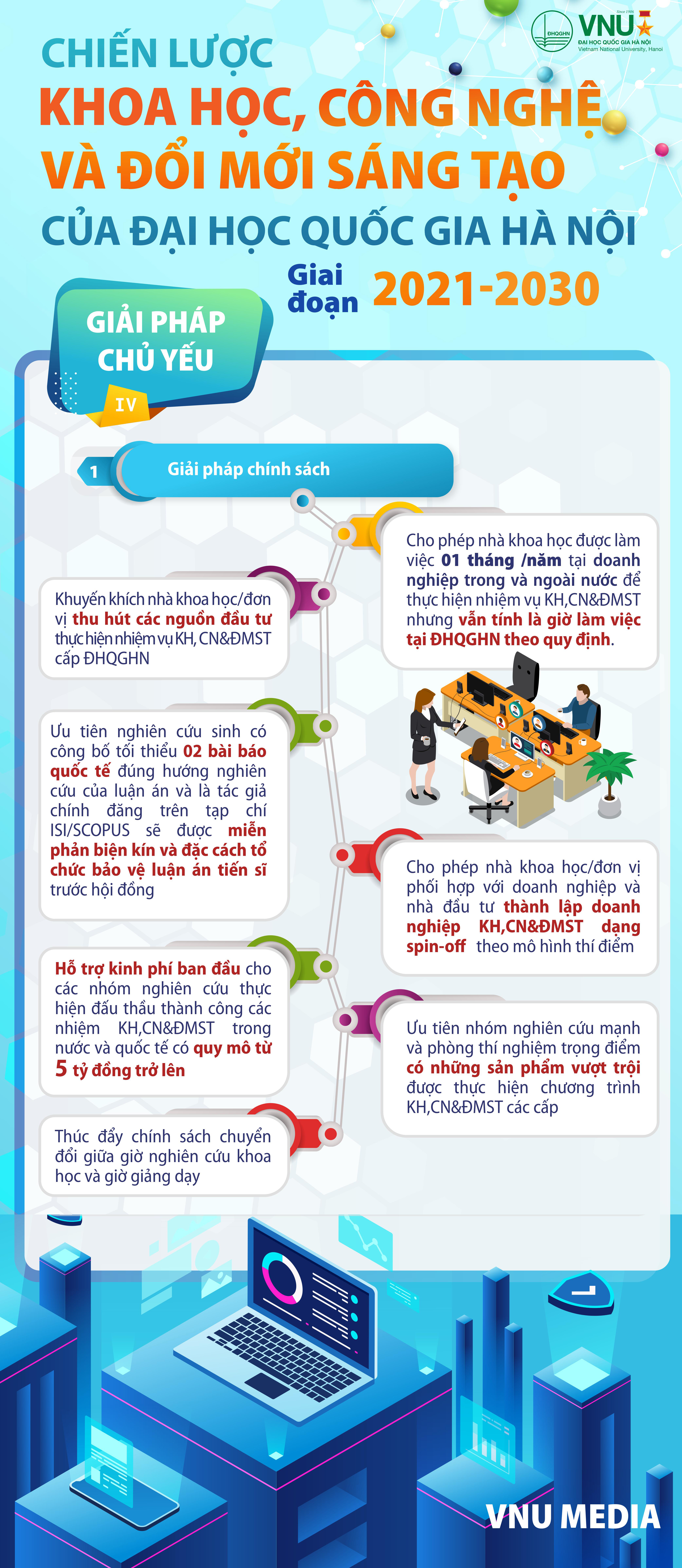 [Infographic] Chiến lược khoa học, công nghệ và đổi mới sáng tạo của ĐHQGHN giai đoạn 2021-2030 - Phần IV: Giải pháp chủ yếu (1)