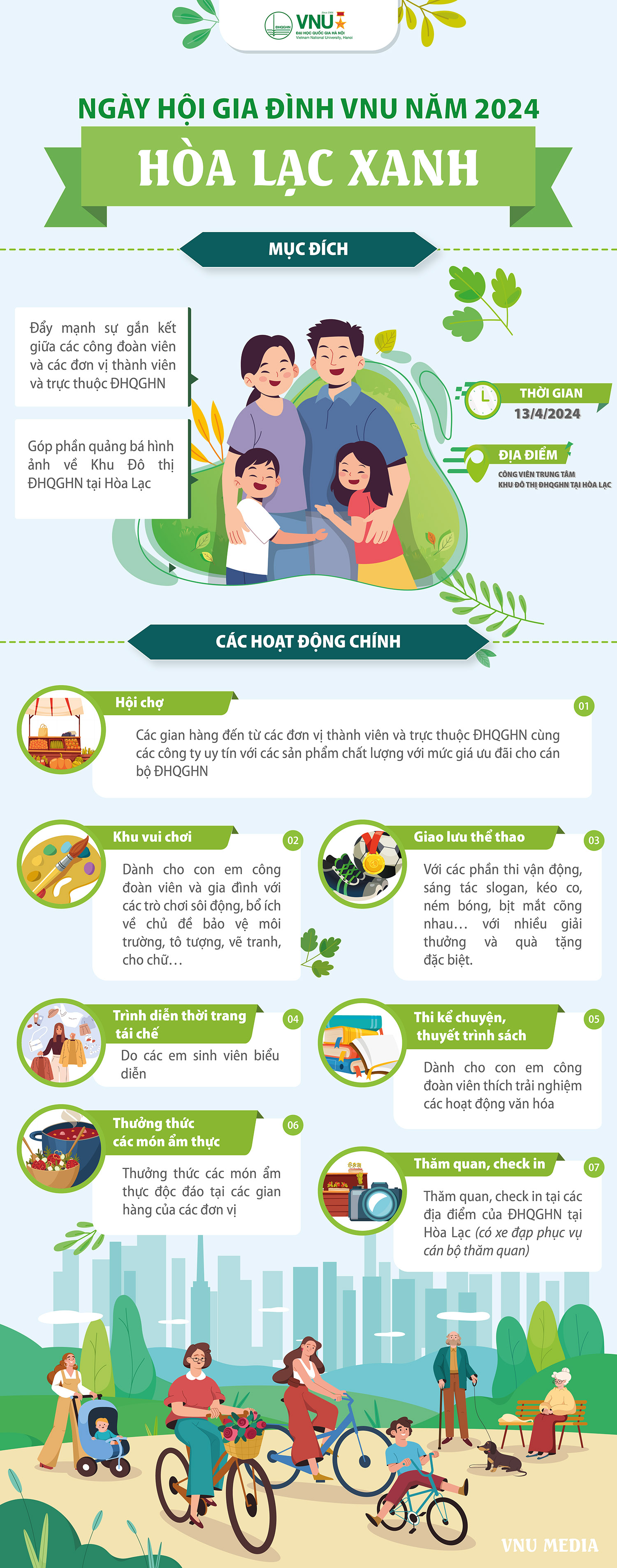 [Infographic] Ngày hội gia đình VNU năm 2024: Trải nghiệm một ngày tại Hòa Lạc với nhiều hoạt động sôi nổi, ý nghĩa, thú vị