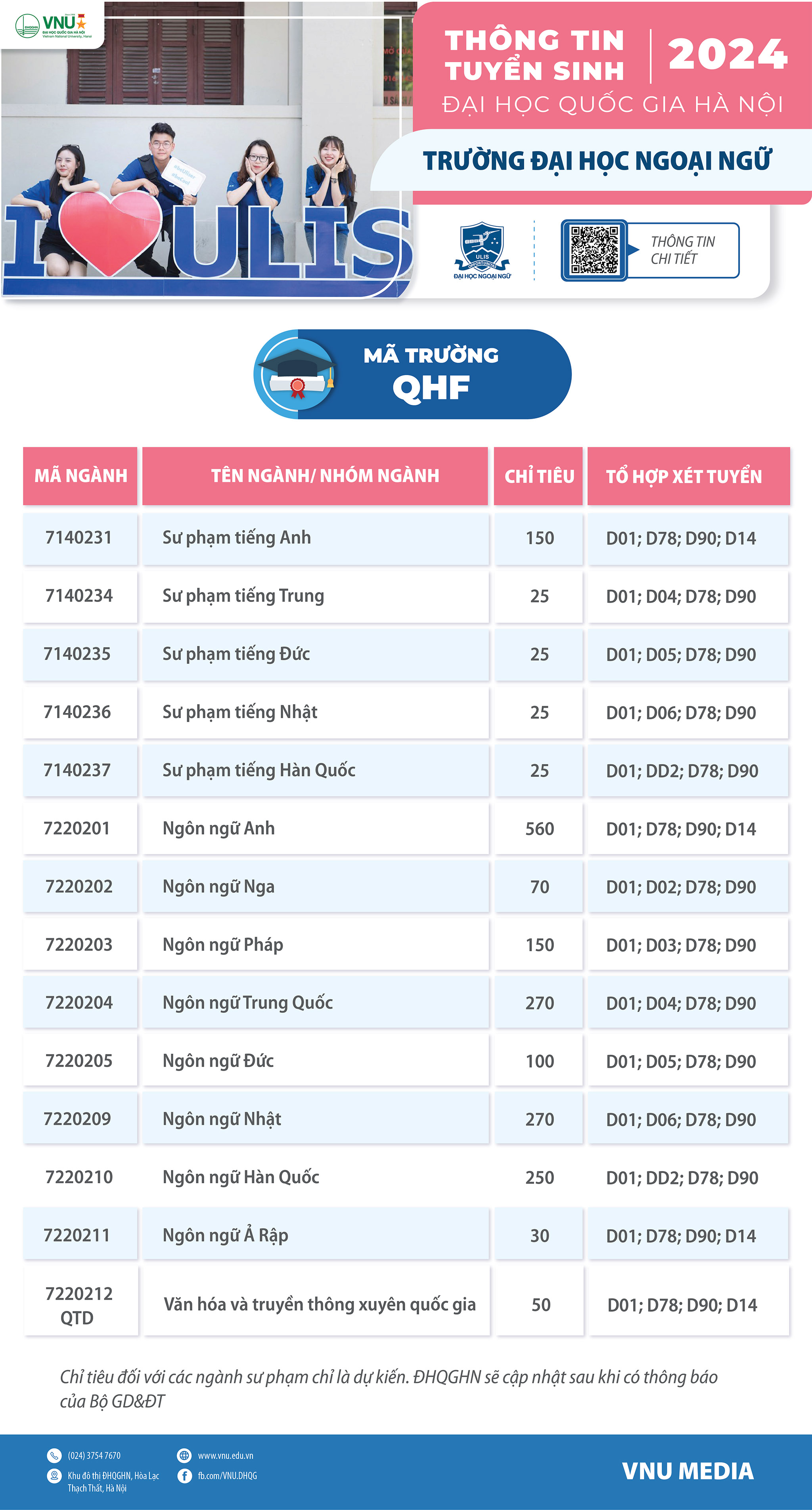 [Infographic] Thông tin tuyển sinh ĐHCQ năm 2024 của Trường ĐH Ngoại ngữ