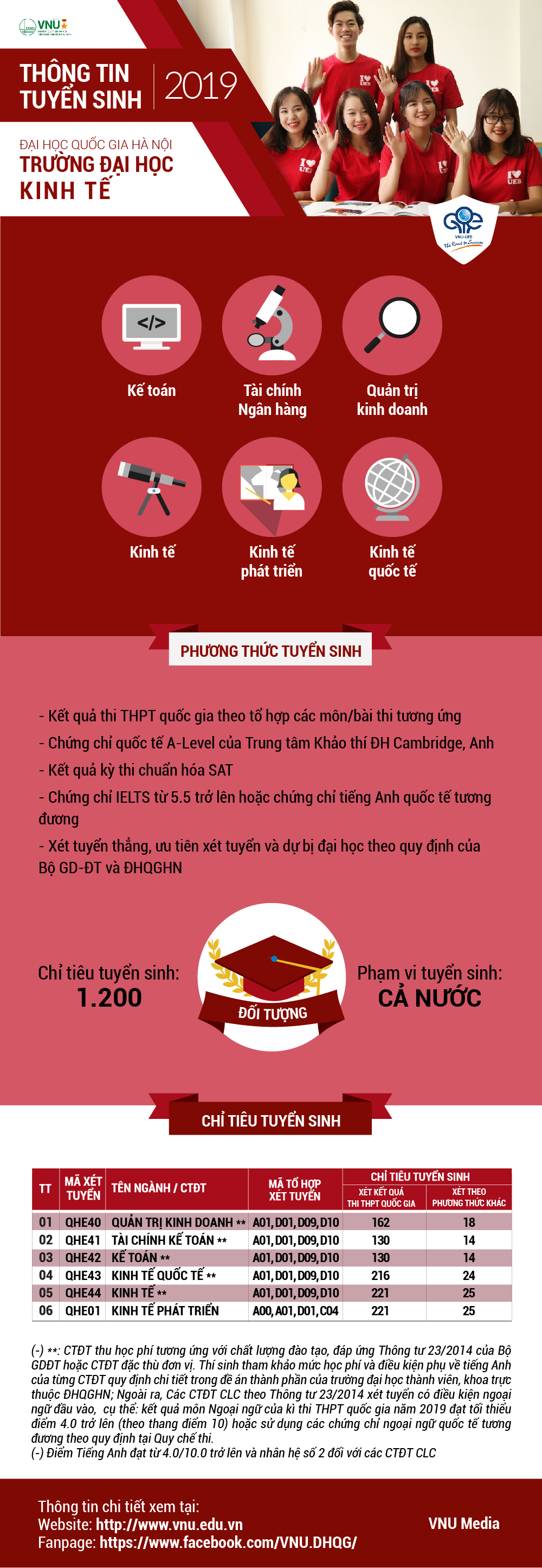 Năm 2019, Trường ĐH Kinh tế, ĐHQGHN tuyển 1.200 chỉ tiêu vào các ngành đào tạo của Trường.