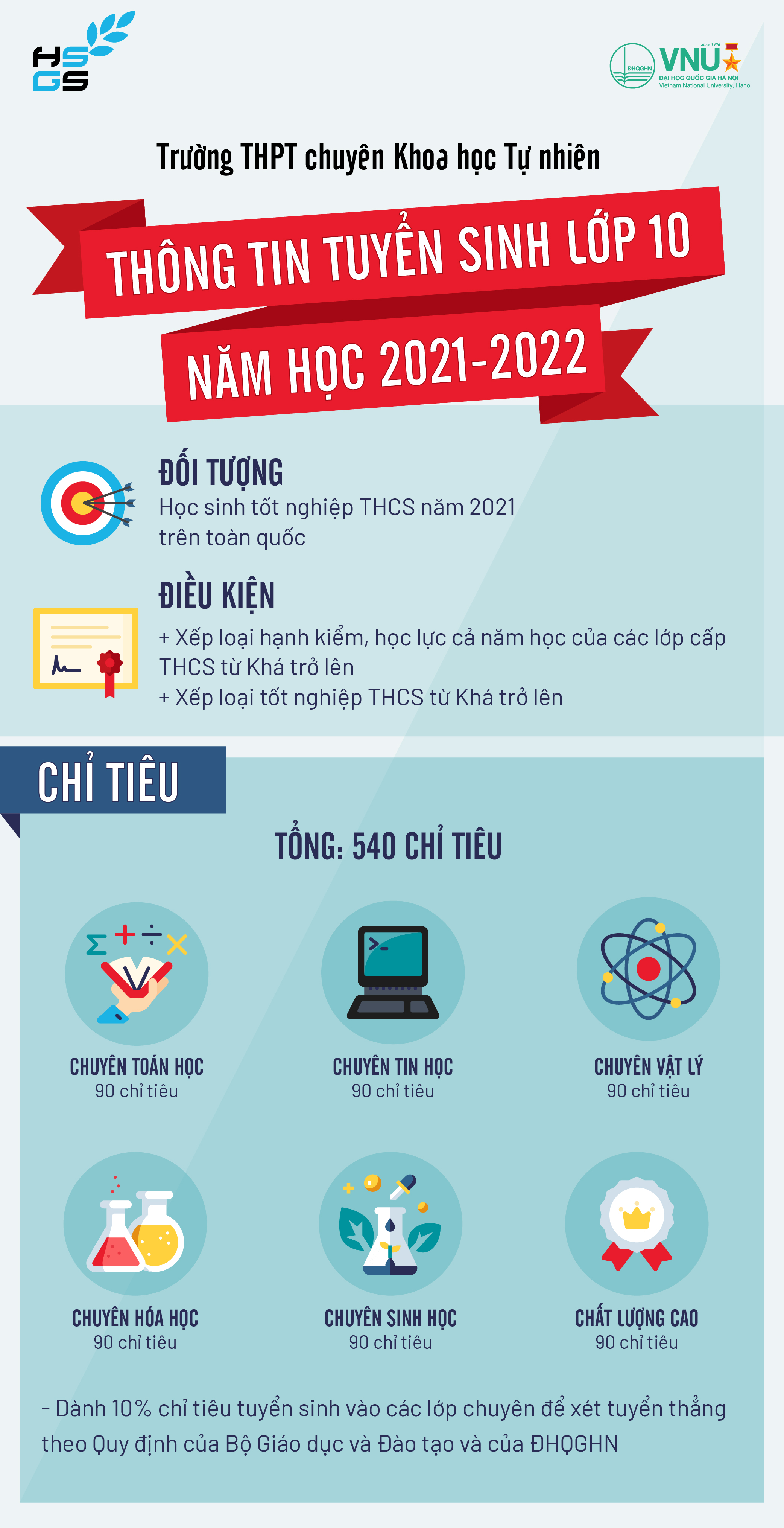 [Infographic] Trường THPT Chuyên Khoa học Tự nhiên: Thông tin tuyển sinh lớp 10 năm học 2021-2022