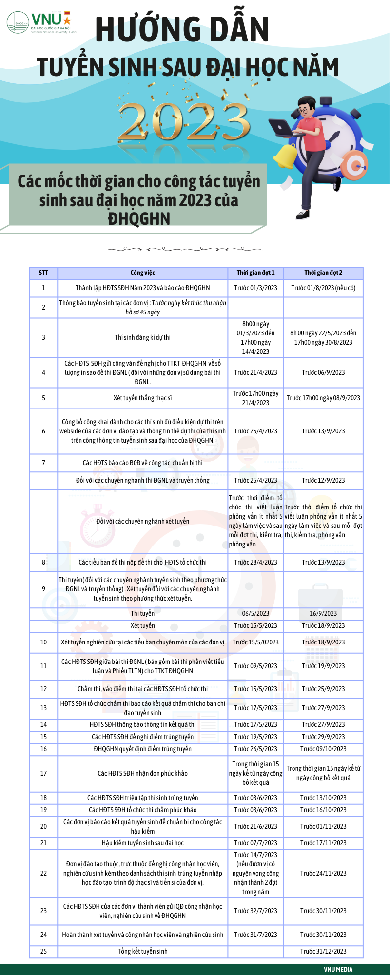 [Infographic] Tuyển sinh SĐH năm 2023: Các mốc thời gian tuyển sinh