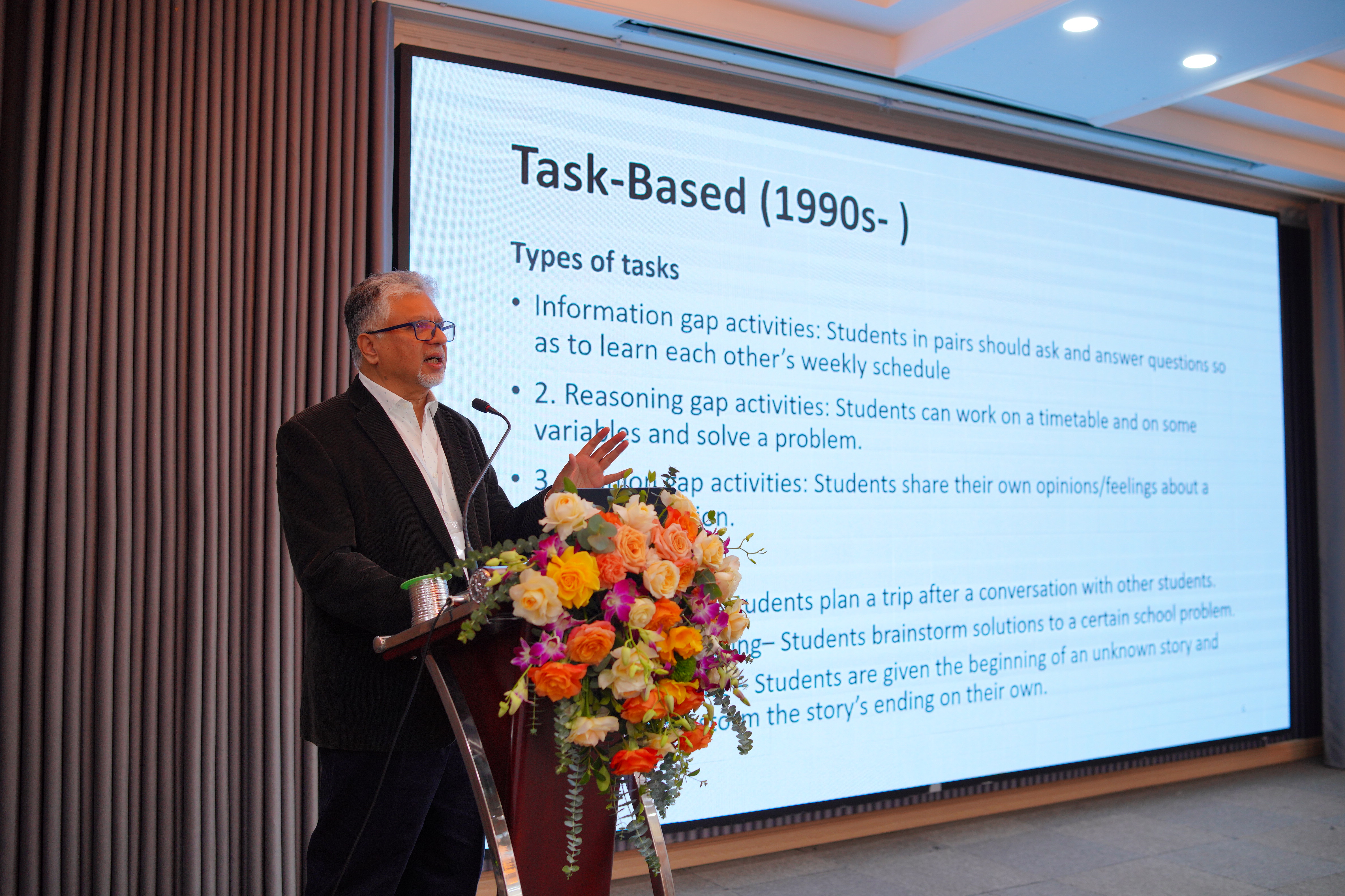 Hội thảo quốc tế ISEE 2024 còn có sự tham gia của GS. Antony John Kunnan (Ngành Ngôn ngữ học ứng dụng, Đại học Carnegie Mellon, Hoa Kỳ) trình bày về sự thay đổi trong phương pháp giảng dạy, học tập và kiểm tra tiếng Anh qua thời gian, từ các phương pháp truyền thống như dịch ngữ pháp, đến các phương pháp hiện đại như đánh giá dựa trên kịch bản.