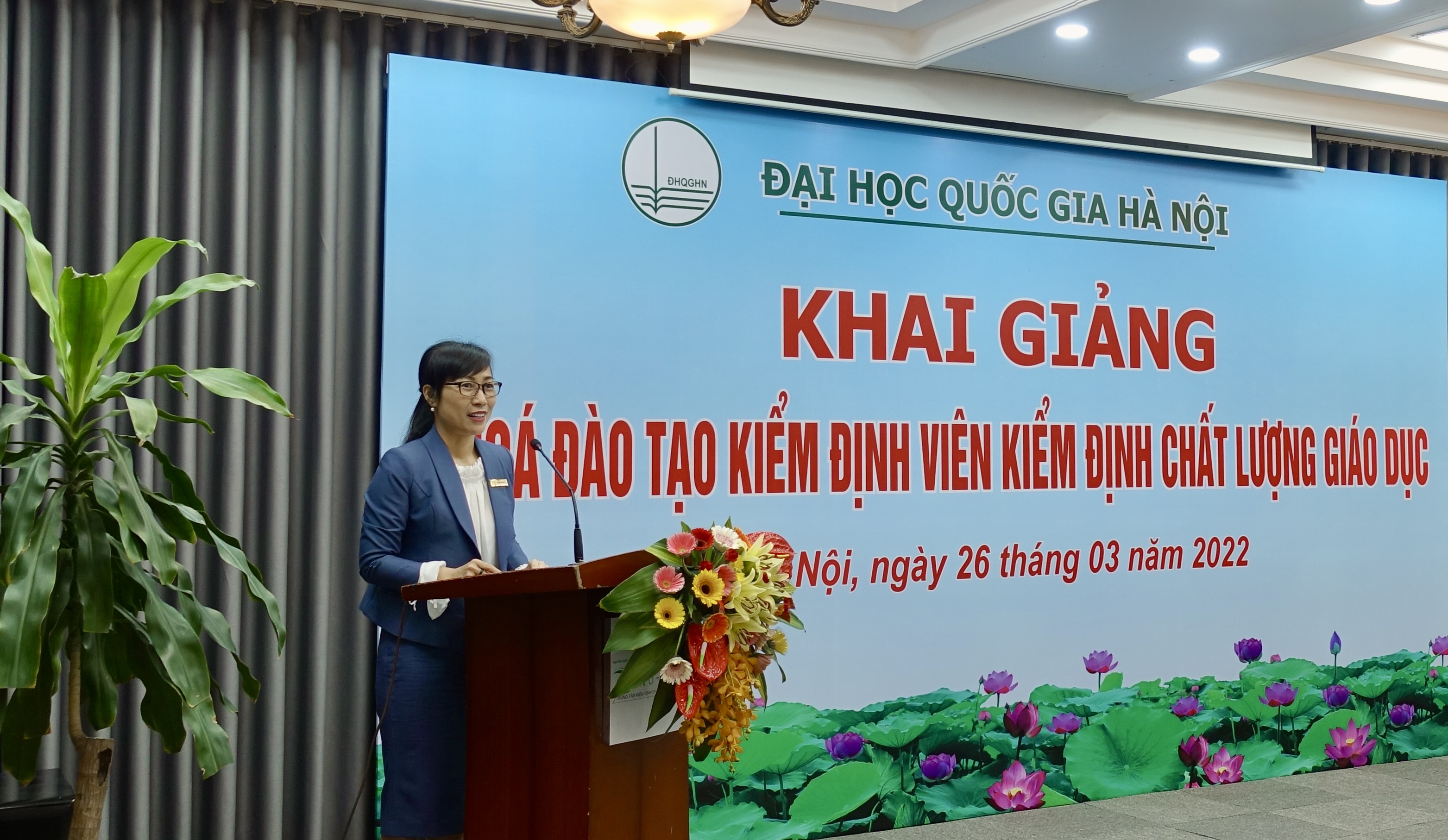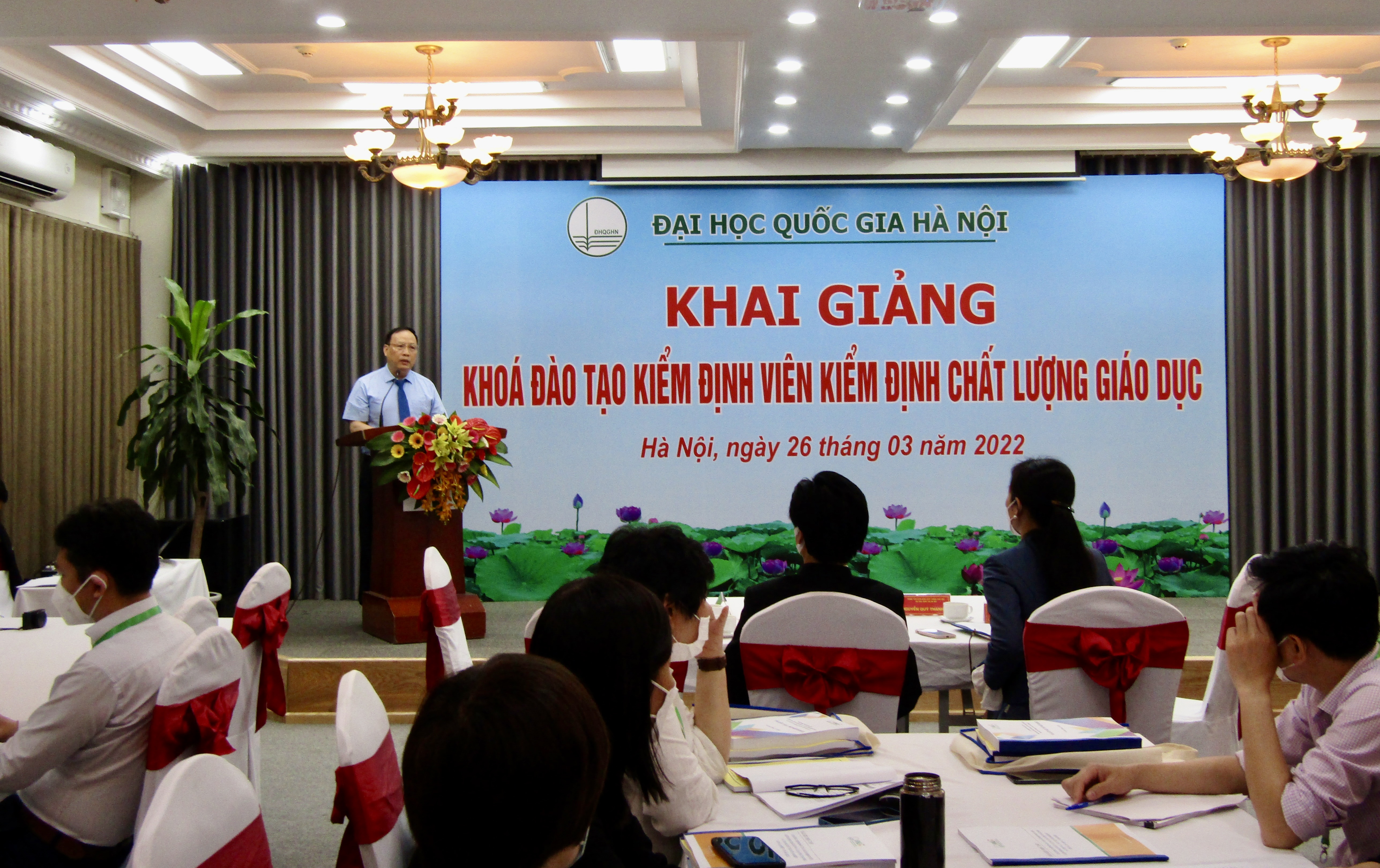 Phát biểu tại lễ khai giảng, Trưởng ban Đào tạo ĐHQGHN Nguyễn Đình Đức nhấn mạnh, với mục tiêu và kết quả đầu ra của khóa đào tạo, cùng với kinh nghiệm thực tiễn triển khai đào tạo và nghiên cứu trong lĩnh vực bảo đảm và KĐCLGD từ rất sớm, ĐHQGHN tin tưởng các học viên là cán bộ chủ chốt sau khi hoàn thành khóa đào tạo sẽ có những đóng góp quan trọng trong các hoạt động ở cơ sở giáo dục, các cơ quan liên quan và tham gia hoạt động đánh giá, KĐCLGD, thúc đẩy công tác đảm bảo chất lượng, góp phần nâng cao hiệu quả quản lý và nâng cao chất lượng trong các cơ sở giáo dục đại học và cao đẳng sư phạm của đất nước.