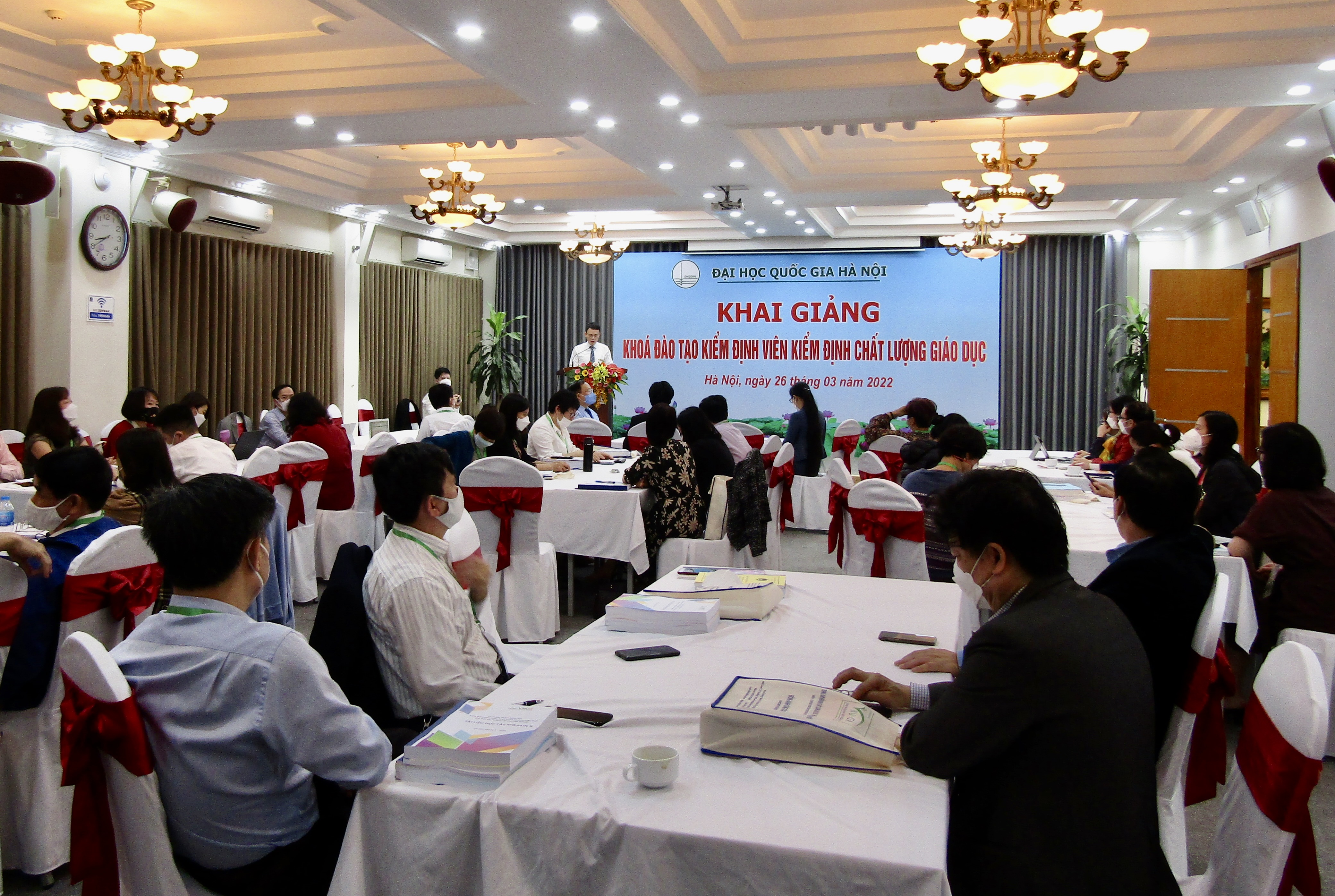 Tham dự lễ khai giảng có GS. TSKH. Nguyễn Đình Đức - Trưởng Ban Đào tạo, ĐHQGHN. Về phía Trung tâm KĐCLGD có TS. Tạ Thị Thu Hiền - Giám đốc, TS. Đinh Văn Toàn - Phó Giám đốc, Chủ tịch Hội đồng KĐCLGD cùng các chuyên gia và giảng viên của Trung tâm KĐCLGD - ĐHQGHN.