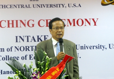 Tham dự buổi lễ có GS.TS. Patric Đoàn - đại diện Đại học Northcentral; về phía Trường ĐH Kinh tế có PGS.TS Phùng Xuân Nhạ - Hiệu trưởng, PGS.TS Nguyễn Hồng Sơn - Phó hiệu trưởng cùng đại diện lãnh đạo các phòng, ban, bộ phận trực thuộc và 23 học viên đã trúng tuyển vào khóa học. Điểm đặc biệt của buổi lễ là tất cả các đại biểu, học viên và người tham dự đều dùng tiếng Anh để phát biểu và điều hành như những khai giảng tại Hoa Kỳ.