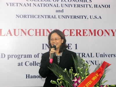 Đáp lại sự nhiệt tình từ lãnh đạo hai trường đại học, thay mặt toàn thể học viên khóa học, học viên Phạm Thị Loan đã phát biểu cảm ơn lãnh đạo hai trường và nhấn mạnh: “Chúng em từ nhiều đơn vị, cơ quan khác nhau hội tụ về đây học tập với cùng một mục đích: lĩnh hội được những kiến thức mới nhất, tốt nhất về kinh tế để vận dụng vào công việc, đóng góp sức mình vào sự phát triển kinh tế - xã hội của đất nước. Chúng em là học viên khóa đào tạo tiến sĩ Quản trị Kinh doanh đầu tiên liên kết với Đại học Northcentral ở Hà Nội và hy vọng rằng, chúng em sẽ là số 1 trong tương lai...”.