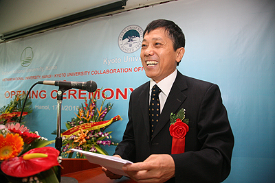 Về phía Nhật Bản có ngài Aiboshi Koichi - Công sứ, Đại sứ quán Nhật Bản tại Việt Nam, ngài Isoda Fumio - Vụ trưởng Vụ Đại học Bộ Giáo dục - Văn hóa - Thể thao - Khoa học và Công nghệ Nhật Bản, GS. Matsumoto Hiroshi - Giám đốc Đại học Kyoto. Về phía Việt Nam, có TS. Nghiêm Vũ Khải - Phó Chủ nhiệm Ủy ban Khoa học Kỹ thuật và Môi trường Quốc hội, GS.TS Mai Trọng Nhuận - Giám đốc ĐHQGHN, GS.TSKH Vũ Minh Giang - Phó Giám đốc ĐHQGHN.
